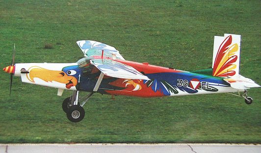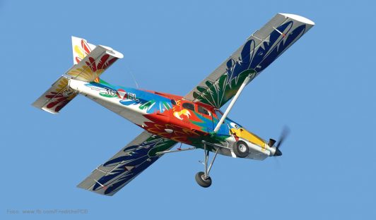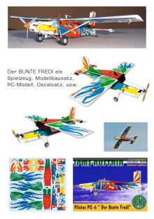 Here I’m showing you some more designs of FREDI. The idea for the „GRISU“ is due to the PC-6’s ability to be used as a firefighting aircraft. „PINK PANTHER“ is a classic representative of the well-known comic book character. And I could also say something about „BLACK PETER,“ but then I have to kill you!