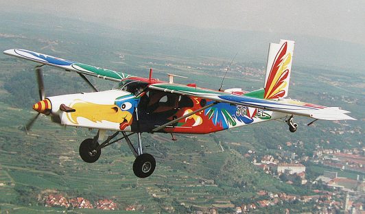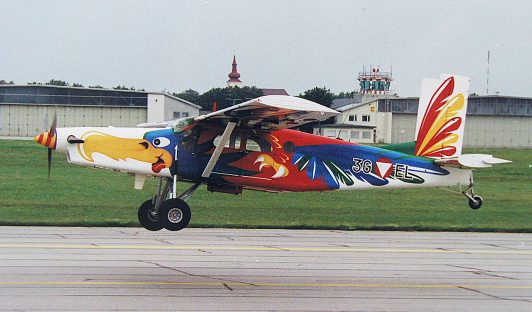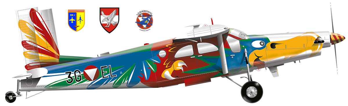 Implementation began in May 2000 at the Brumowski Air Base in Langenlebarn. The 3G-EL was selected, partially disassembled, the entire exterior surface sanded, masked, and then painted. Several weeks of work were carried out before the aircraft could be reassembled and test-flown for the first time. Just in time – two weeks before the air show in Zeltweg. In honor of Brigadier „Fredi“ Münzer (Head of the Air Materials Staff and thus also responsible for the approval of the project implementation), the Bird of Paradise was officially named „BUNTER FREDI“ FREDI was officially presented at the AIRPOWER and has since been shown at many events at home and abroad. It generated considerable interest. The 3G-EL was in service with the Austrian Air Force until July 2012. Then it was decided to sell some PC-6 and PC-7 aircraft. This ended FREDI’s career in Austria, and his traces were lost.